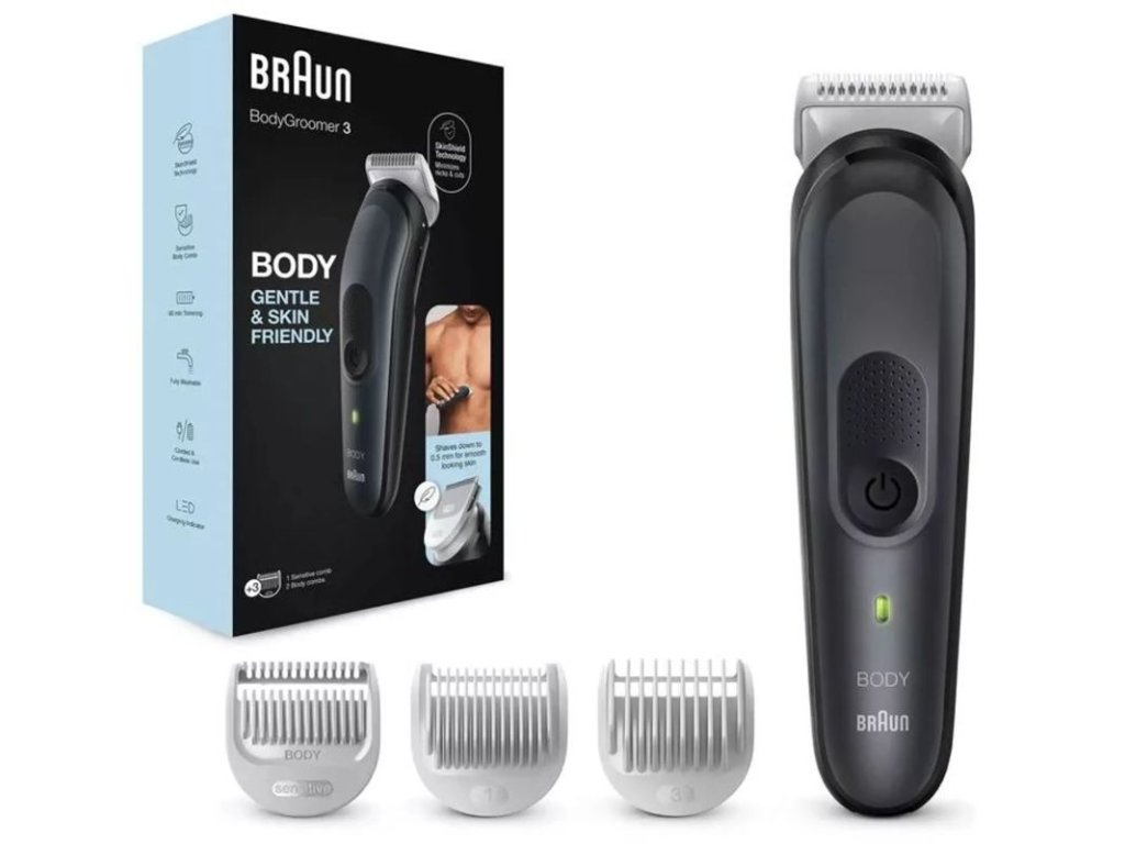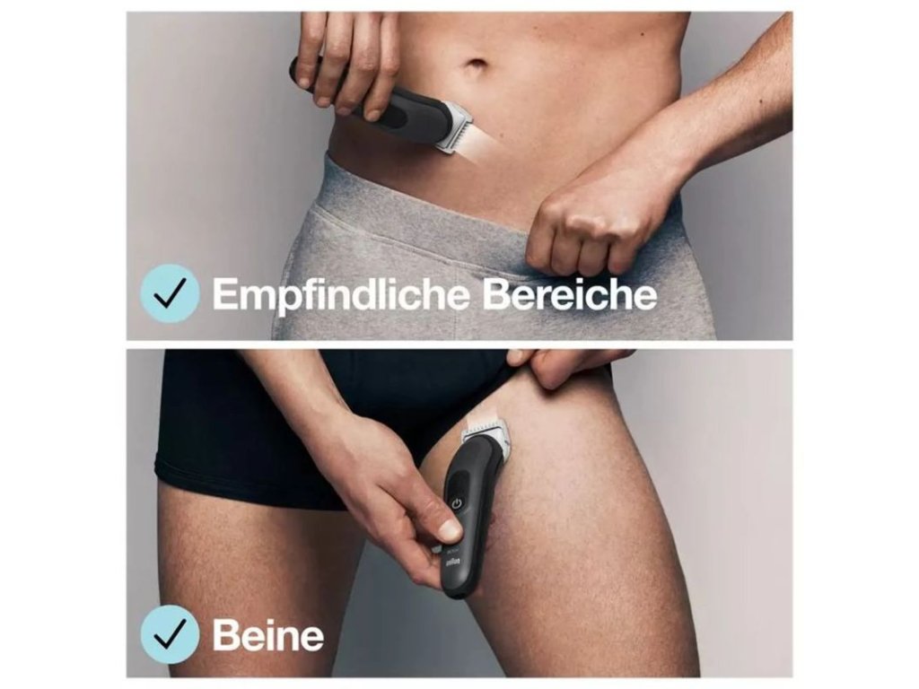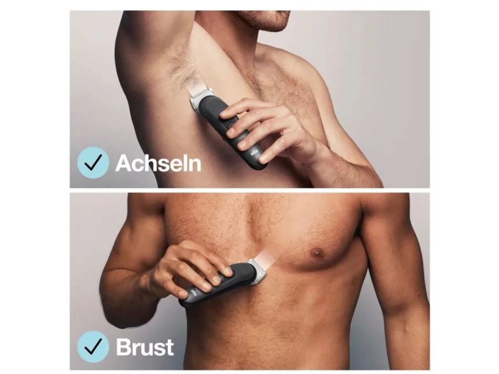 Skvělé výsledky, šetrný k pokožce: zastřihovač na tělo Braun 3 je určen pro rychlou a pohodlnou péči o celé tělo od hrudníku a podpaží až po nohy a třísla.