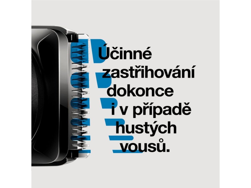 Pro precizní konturování nebo zastřižení na co nejkratší délku bez tahání a podráždění pokožky umožňují precizní a ostré břity z nerezové oceli. Snadno si poradí i s delšími vousy, pokud se je rozhodnete zkrátit na moderní strniště.
