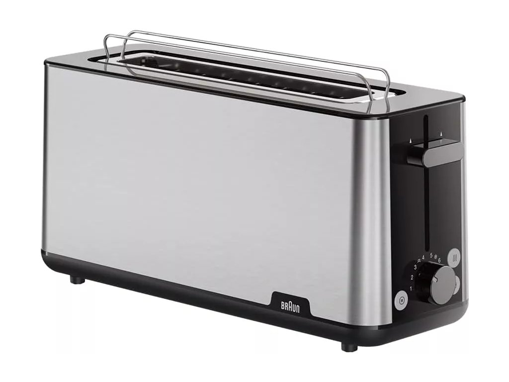 - 25 cm dlouhý zámek – extra dlouhý otvor se hodí pro všechny druhy chleba do délky 25 cm. Automatický centrovací systém zajišťuje, že je chléb vždy optimálně umístěn pro rovnoměrné opálení